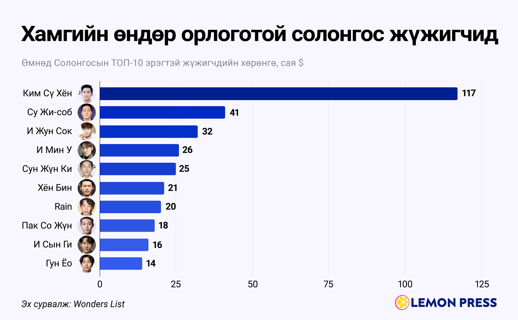 🤑 Хэд юм бэ? Харин тун удахгүй Монголд ирэх гэж буй Rain ТОП-10-н жагсаалтын 7-рт бичигдэж буй. Цаашлаад, тэрбээр эхнэр болох Ким Те-Хигийн хамт Өмнөд Солонгосын хамгийн баян хосуудын жагсаалтыг ч өнгөлдөг. Гэснээс түүний тоглолтын зохион байгуулагчаар EVANDIS Entertainment хариуцаж байгаа гэсэн шүү.