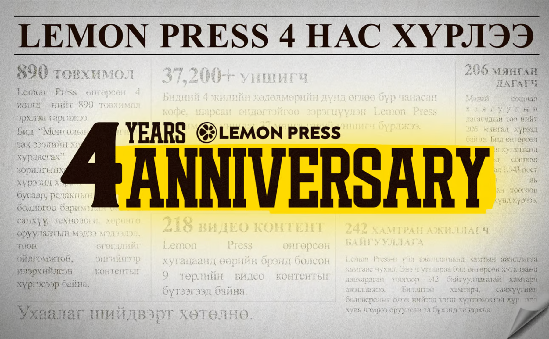 Lemon Press үүсгэн байгуулагдаад 4 жилийг үдлээ. Энэ хугацаанд юу хийж бүтээснээ товч хүргэе. 🍋